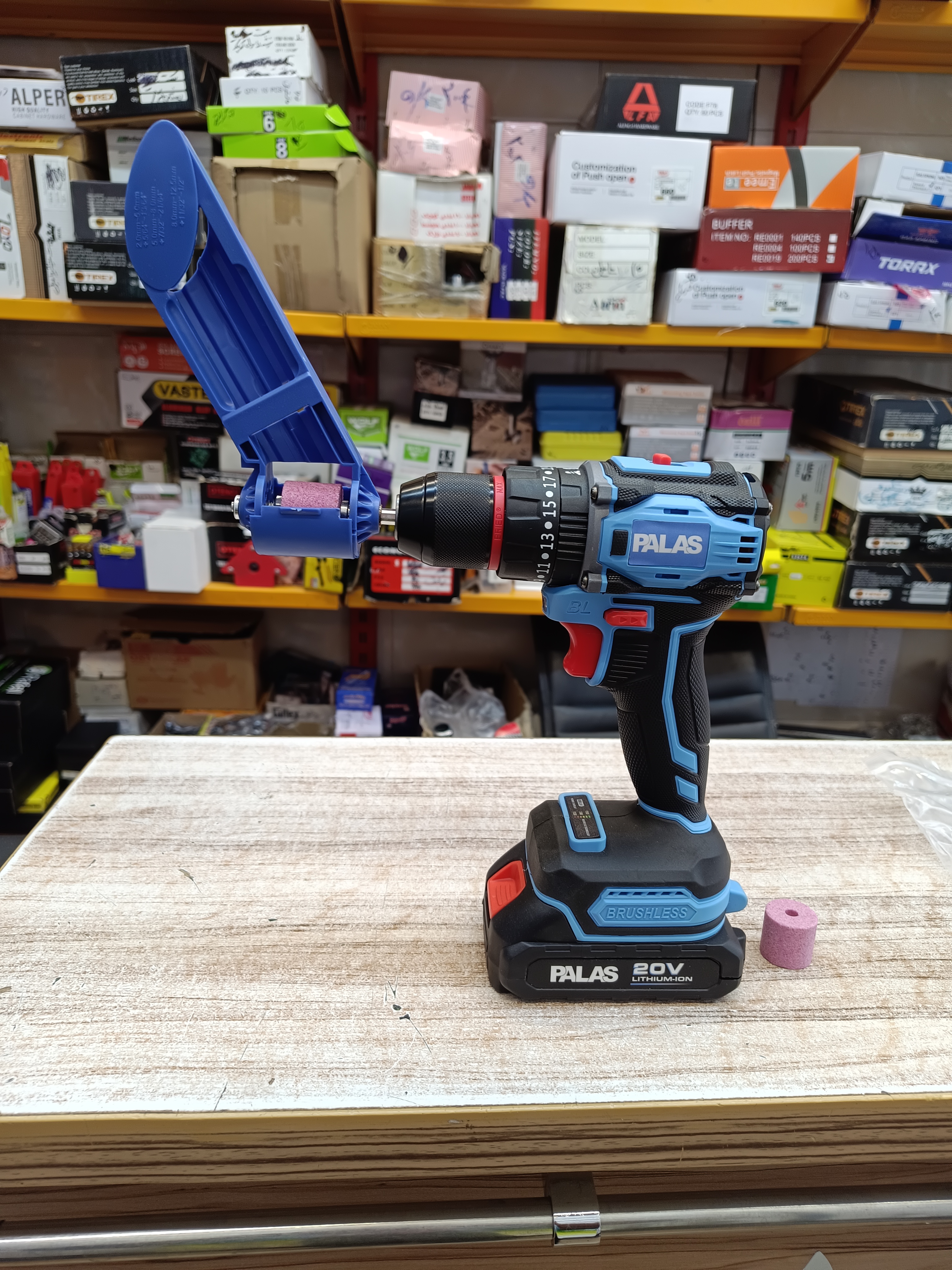 مته تیز سر دریلی اوتنسی قابلیت تیز کردن از سایز ۲ تا ۱۰ سنگ اضافی به همراه اچار و پیم یدکی مناسب برای استفاده روی دریل شارژی